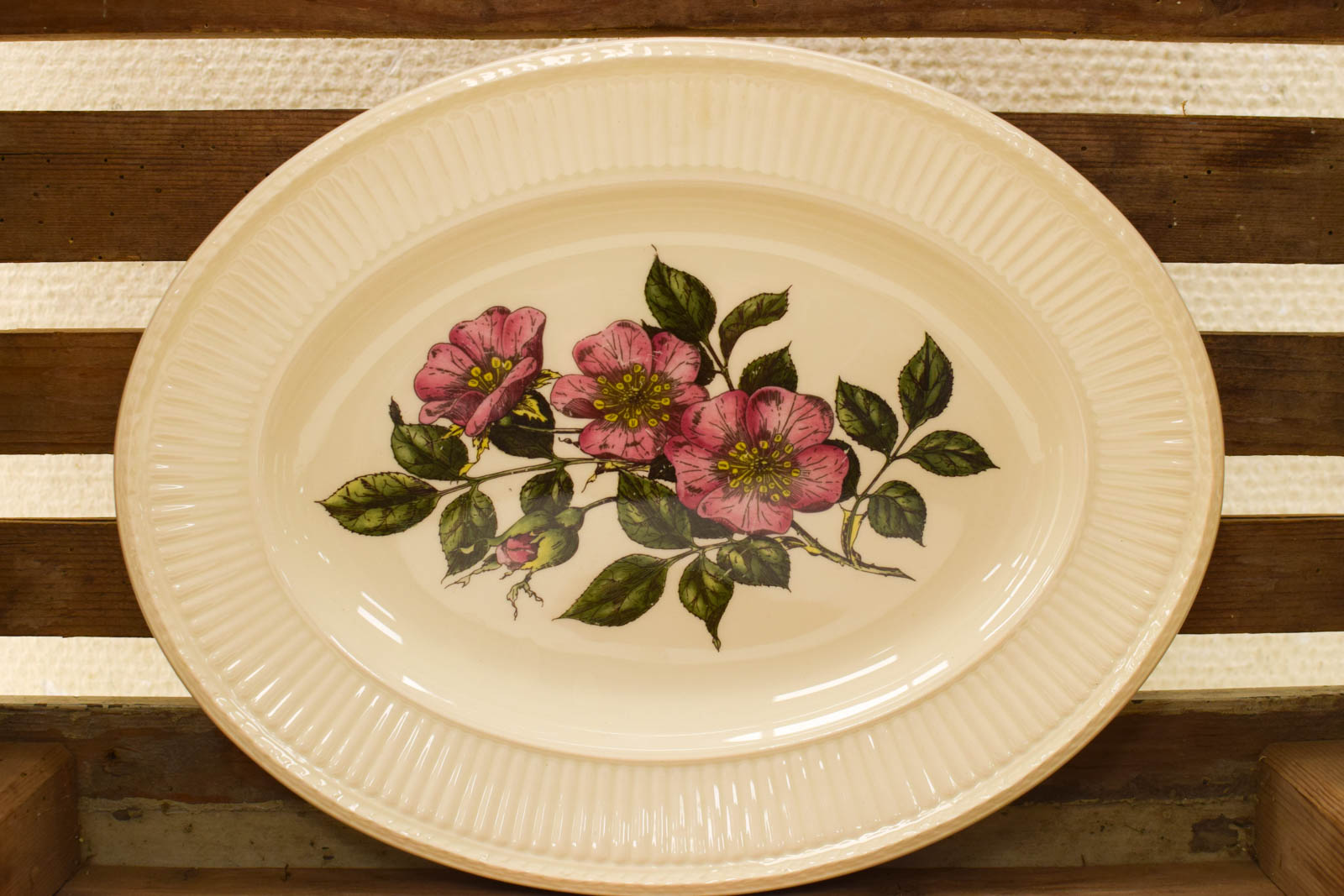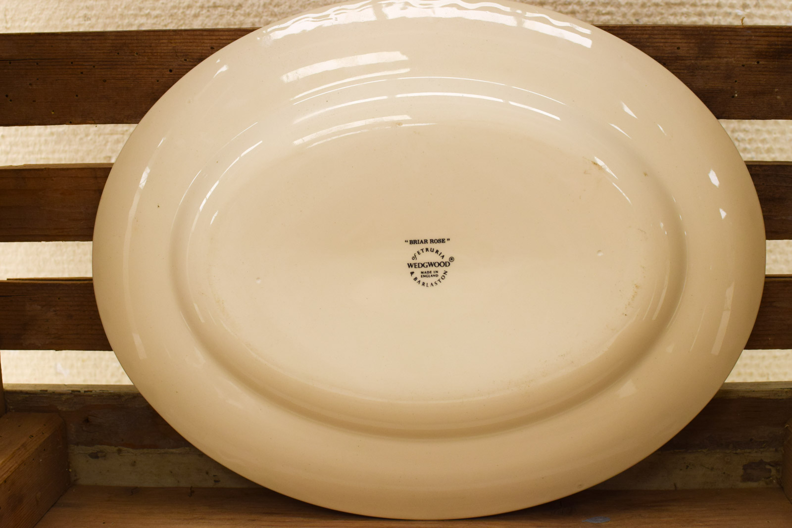 Wedgwood porseleinen ovale schaal met het klassieke Briar Rose motief. Afmetingen 29,5 x 23 cm. Met lichte gebruikssporen maar nog heel en goed bruikbaar.
