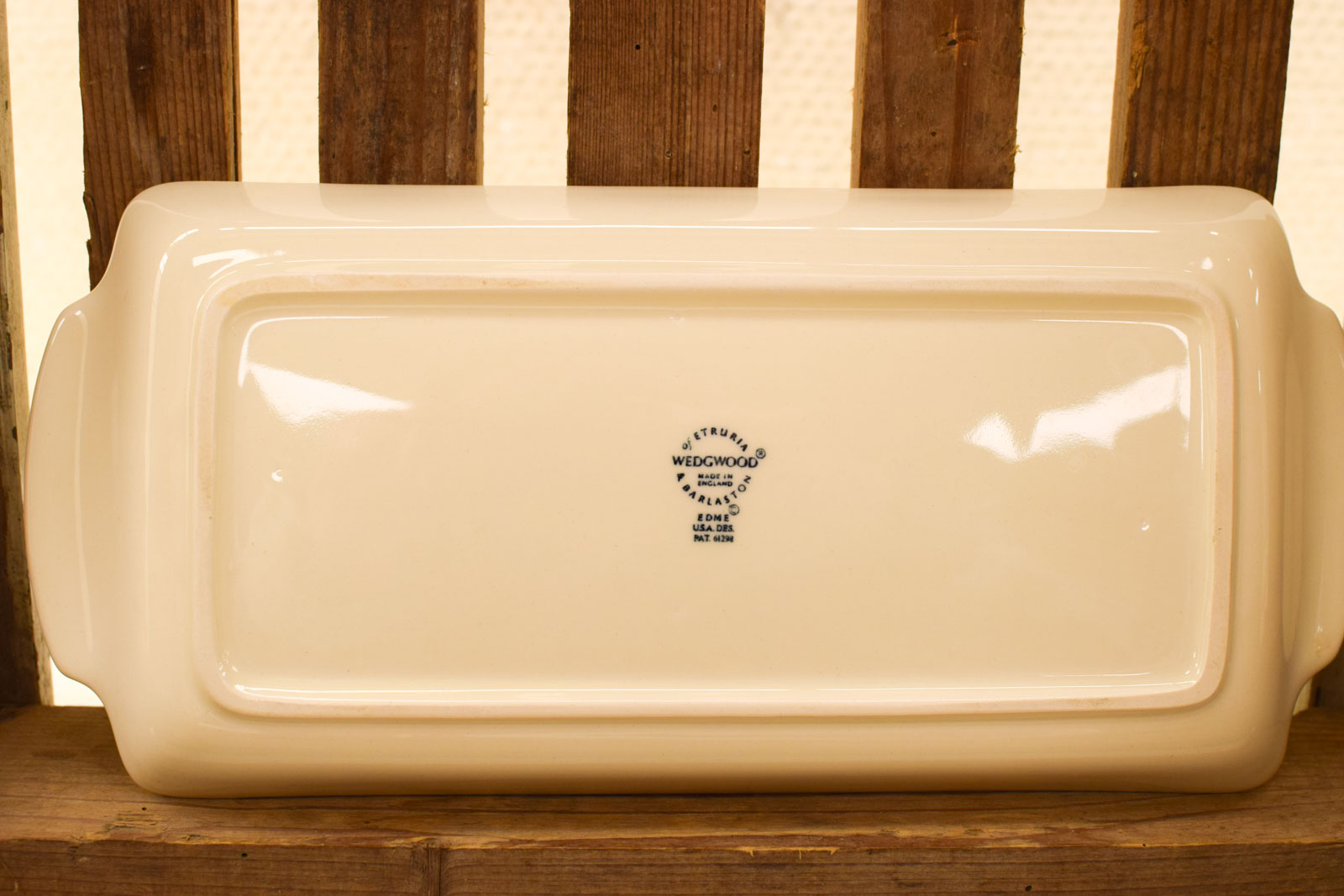 Met het Wedgwood-stempel op de onderkant kun je dit servies direct identificeren. Dit is een stuk dat zowel functioneel als decoratief ingezet kan worden in de keuken of eetkamer.