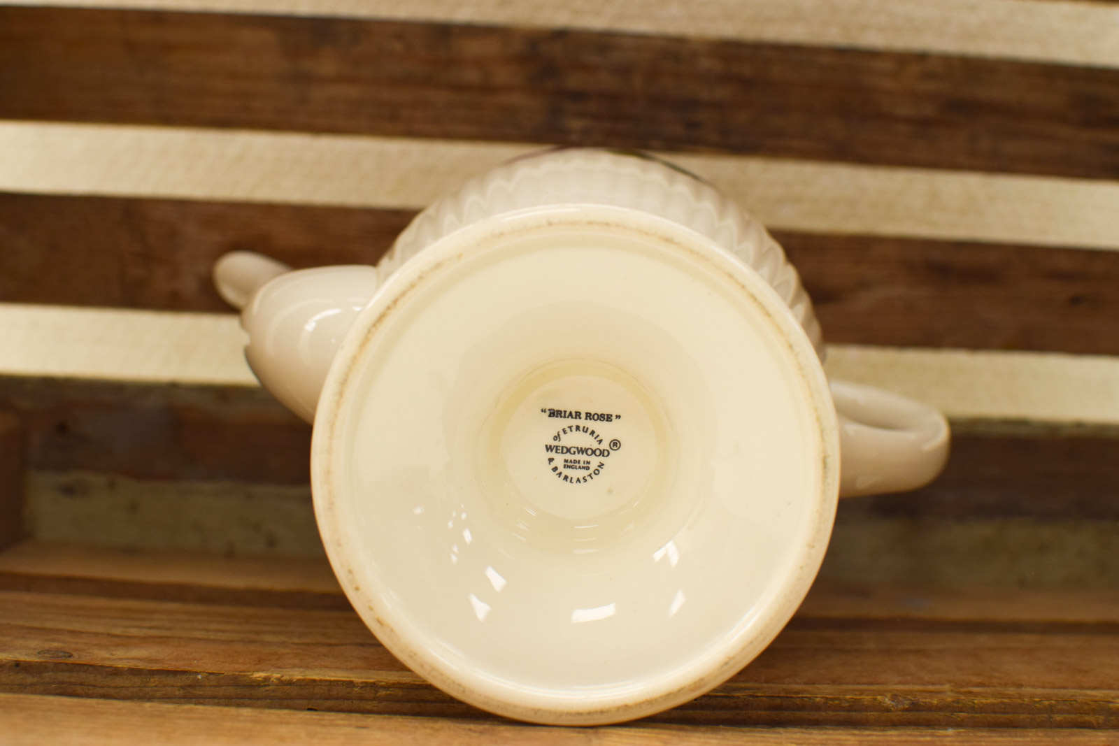 Wedgwood staat bekend om haar fijne porseleinkwaliteit en geraffineerde designs. Het merk, opgericht in 1759, wordt al generaties lang geassocieerd met duurzaam ambacht en elegante huishoudens. Deze theepot draagt het Wedgwood-stempel op de bodem met het opschrift Briar Rose.