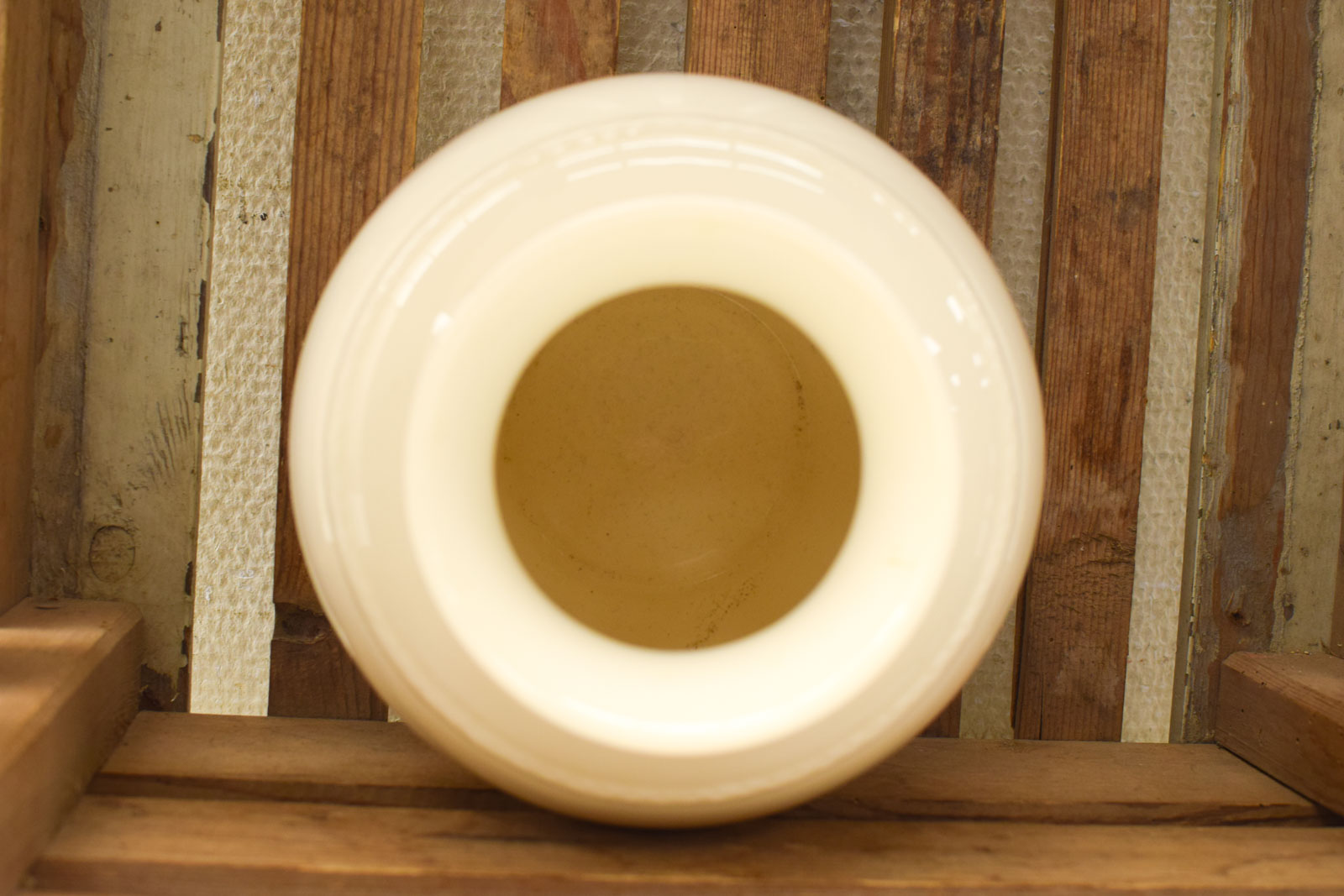 De vaas verkeert in redelijke staat. Er zijn gebruikssporen zichtbaar op de bodem en rand, maar geen ernstige beschadigingen. De vorm is intact en de witte glazuur is nog glanzend. Dit is een vogelaar voor wie graag vintage Engelse porseleinen accessoires verzamelt of zoekt naar een sfeervolle vaas voor droogbloemen of zijden bloemen.
