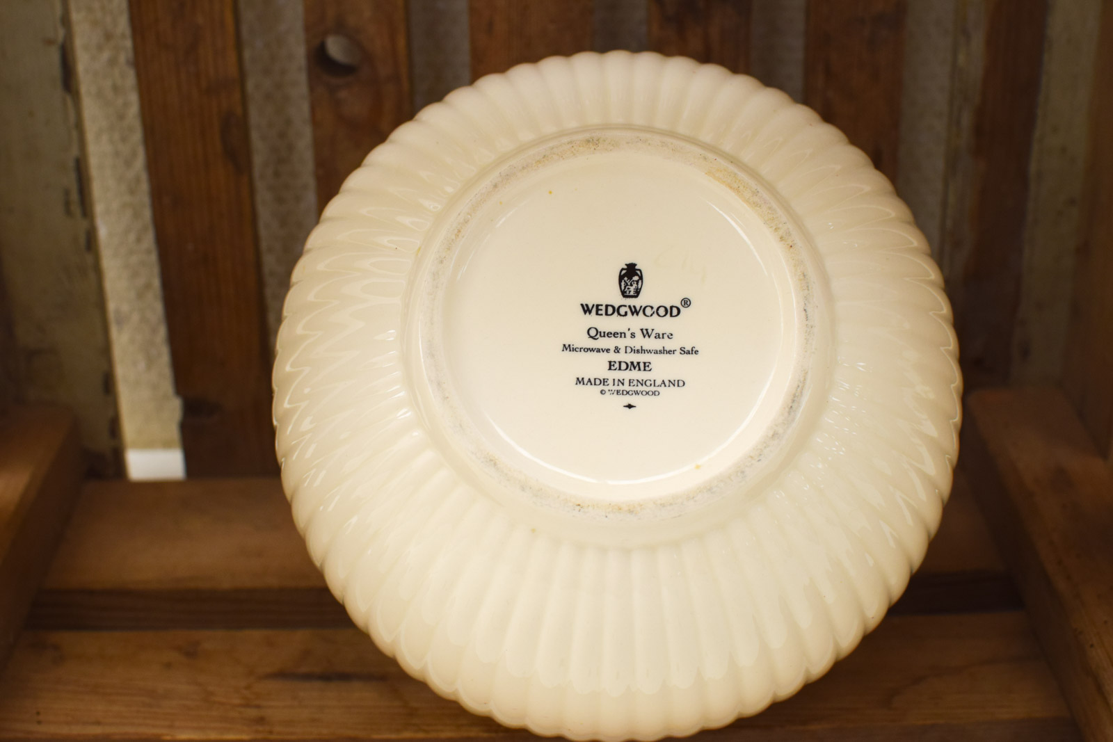 Wedgwood is een befaamd Brits potteriebedrijf dat bekend staat om hoogwaardig porselein en aardewerk. Deze vaas draagt het originele Wedgwood-merk en is gemarkeerd als microwave en dishwasher safe, wat aangeeft dat het om Queen’s Ware gaat — een van hun duurzamere lijnen.