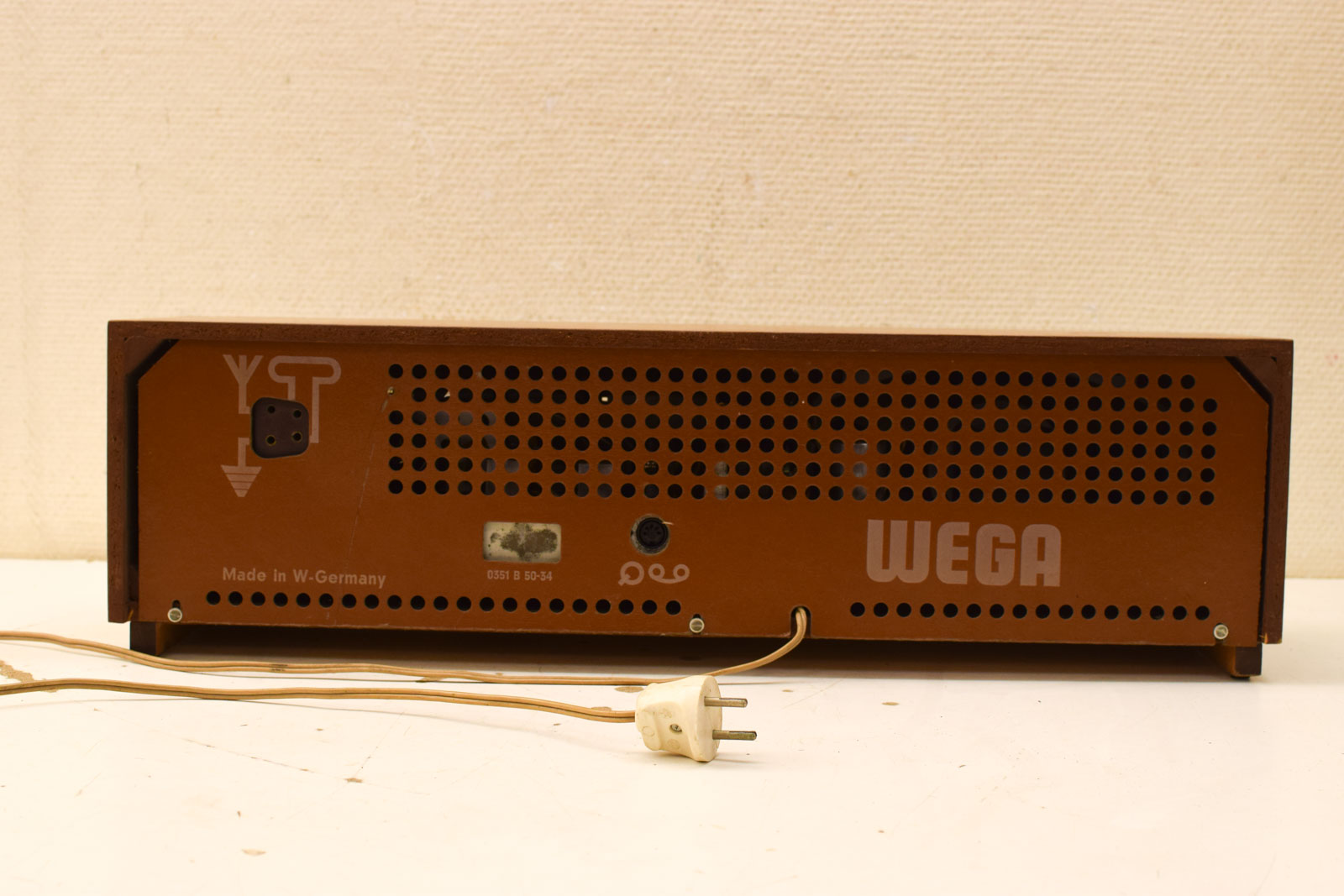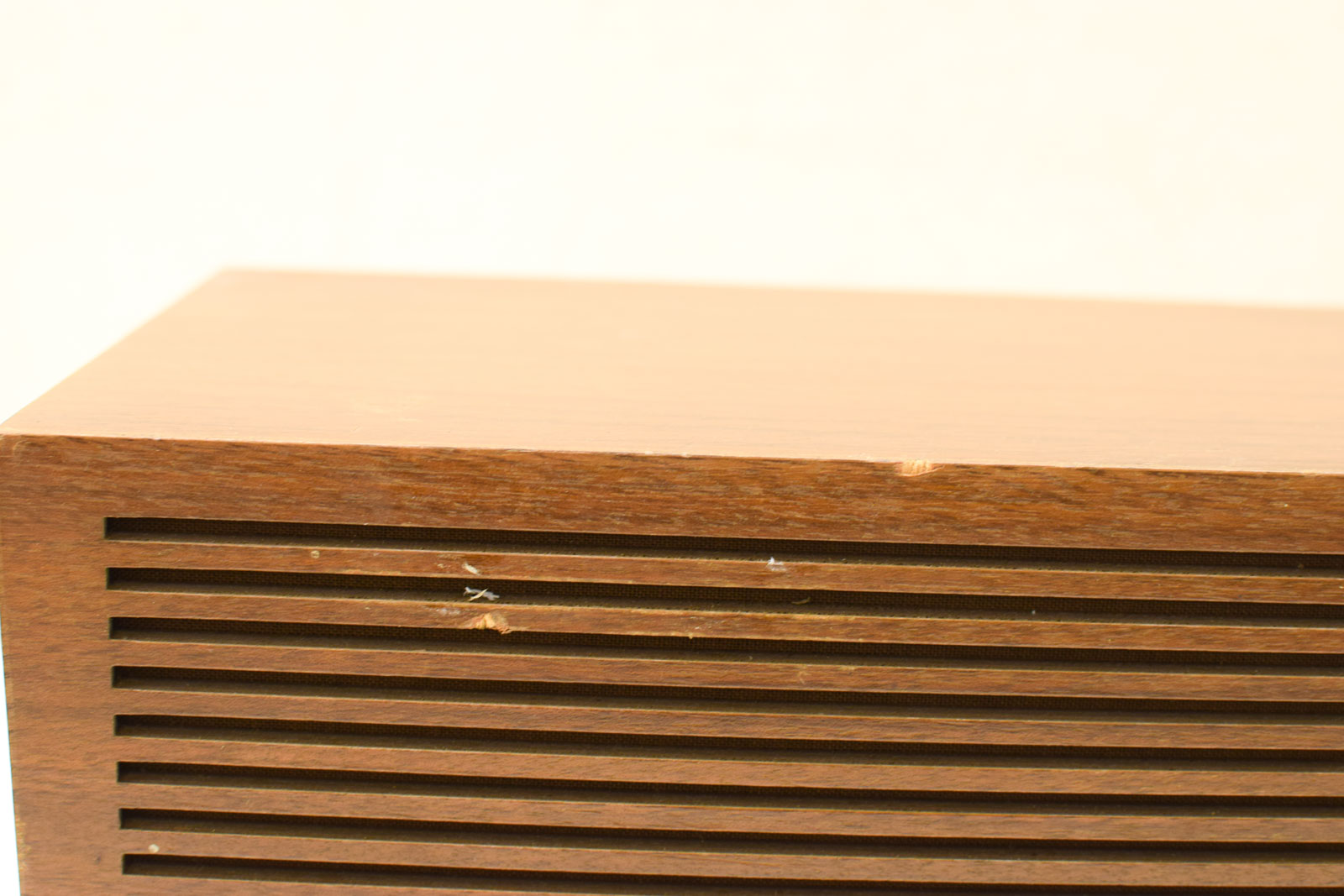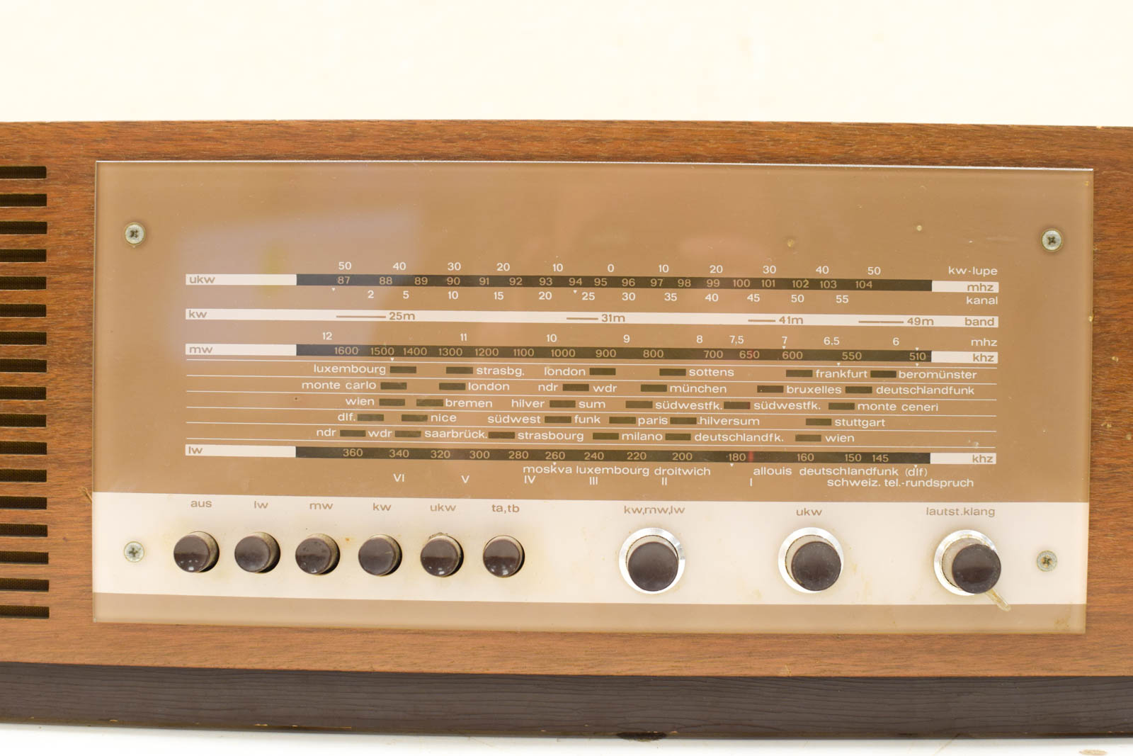 de radio gaat aan maar we krijgen geen zender of geluid heeft lichte beschadigingen aan het hout breed 61,5 cm