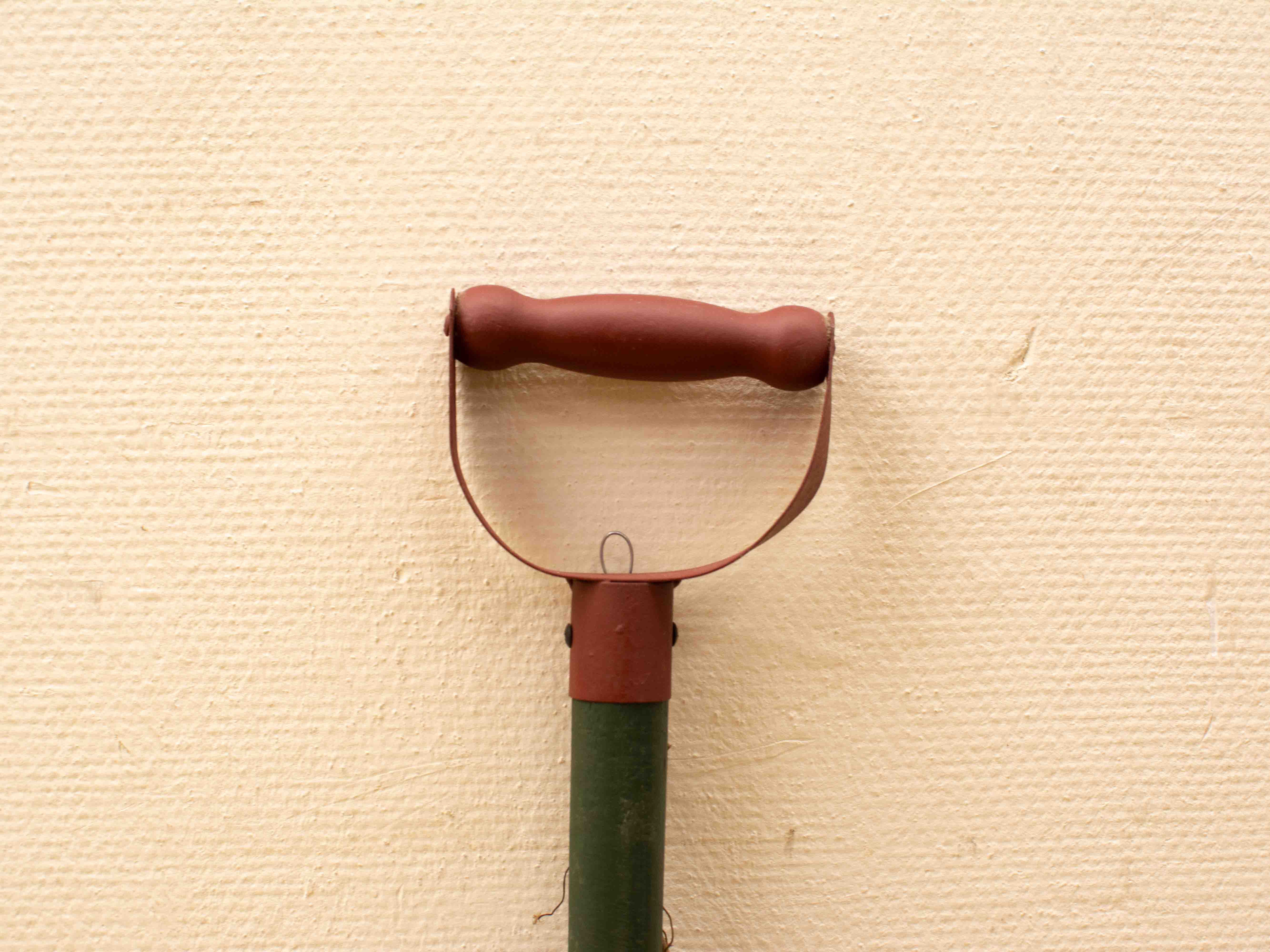 de schep is van metaal de stok en de laatjes van hout