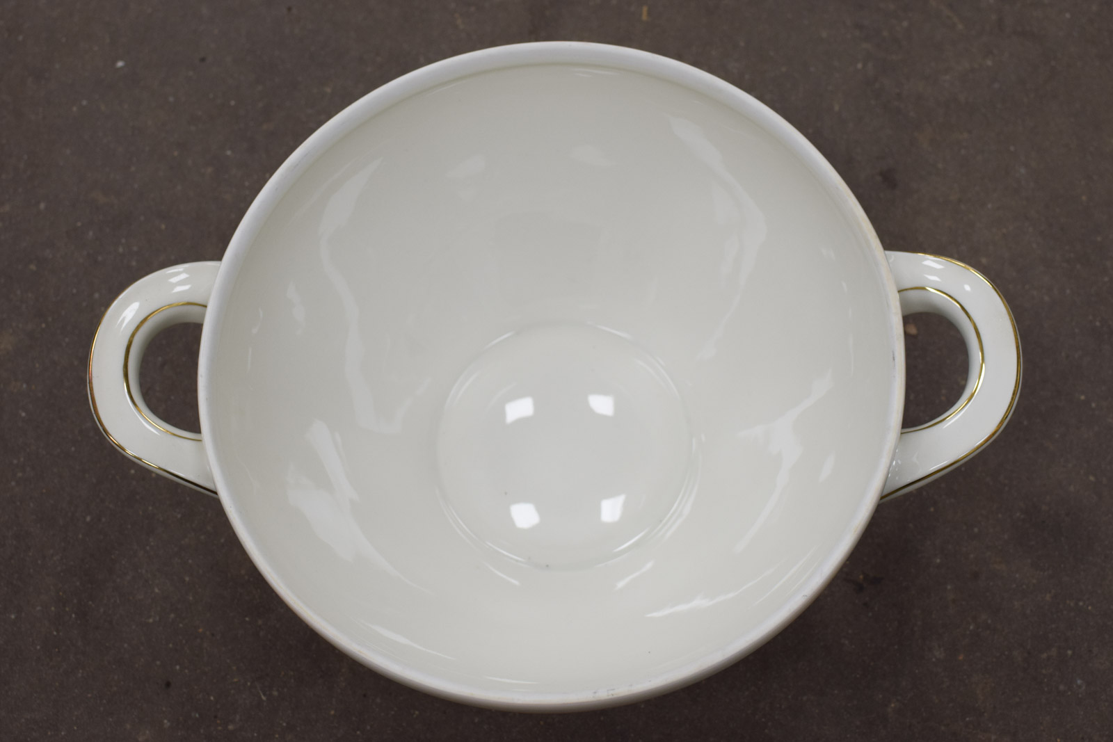heeft een opening in de deksel voor een lepel aan de rand is gebruikssporen maar hee gemeten zonder deksel van oor tot oor breed 34 cm hoog 12 cm