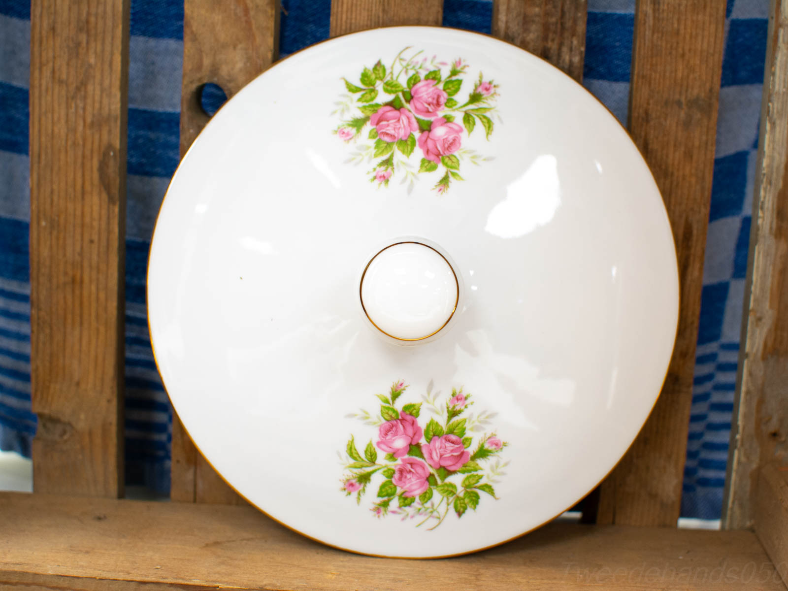 de schaal ziet er nog goed uit diameter van de schaal 20,5 cm hoogte gemeten zonderdeksel 9 cm
