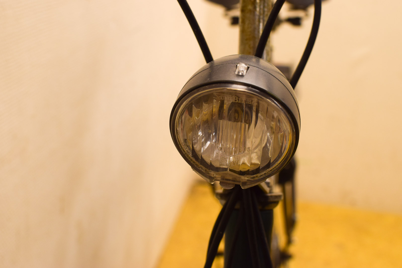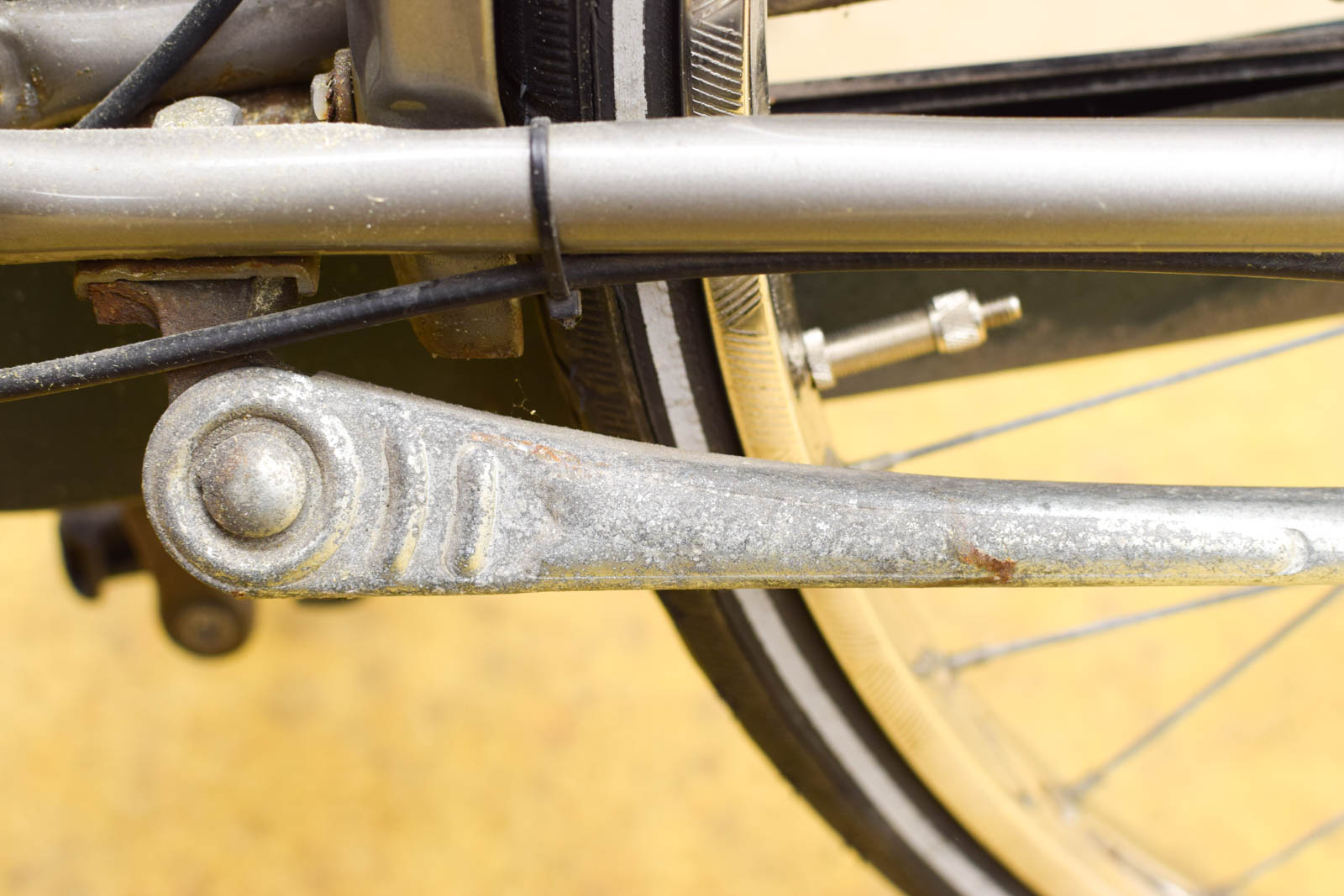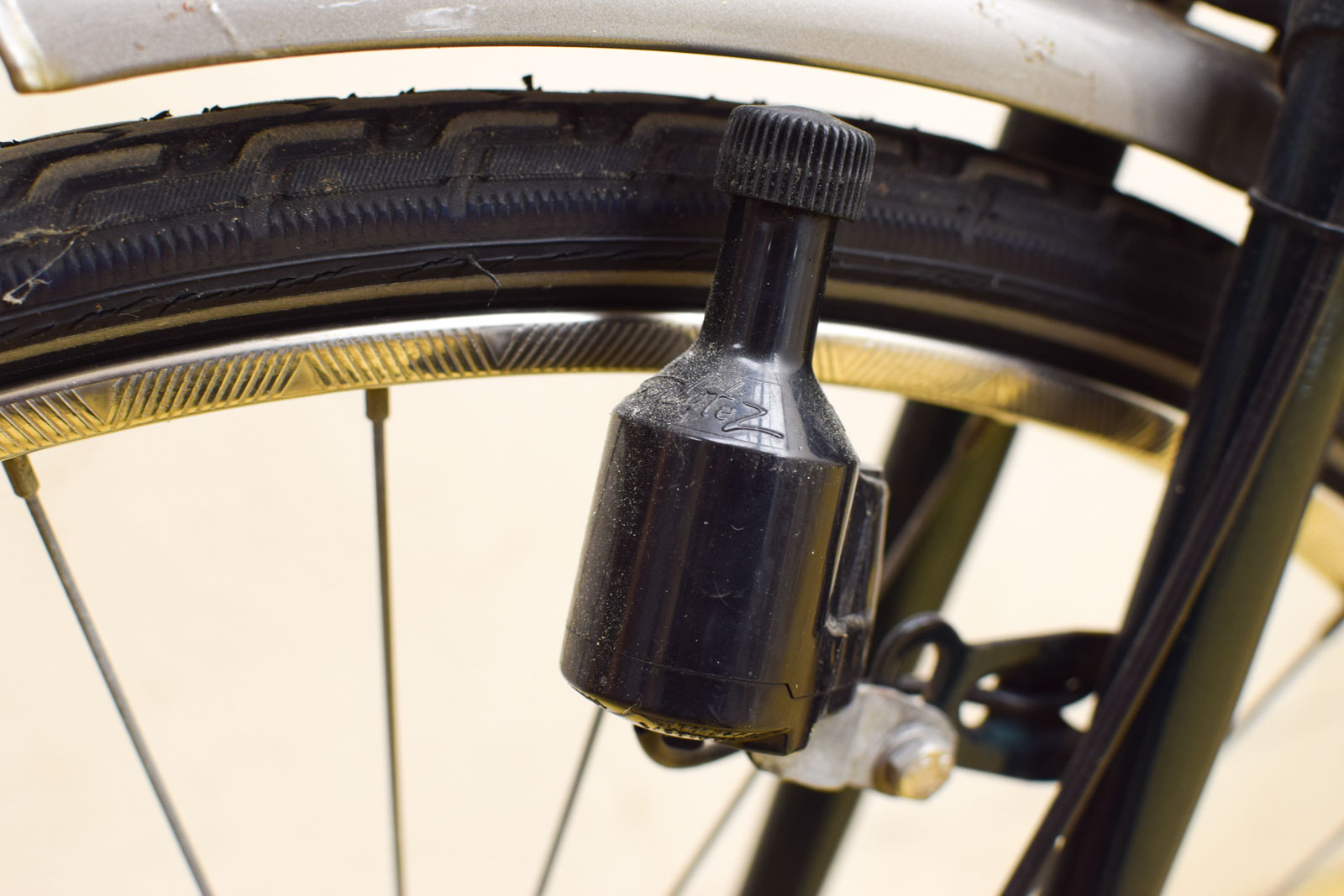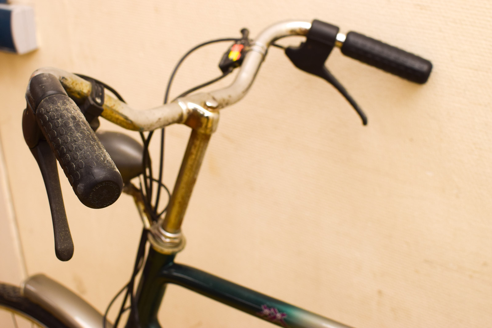 de fiets is een opknapper de fietsbanden zijn leeg/lek de kleur van de fiets groen grijs