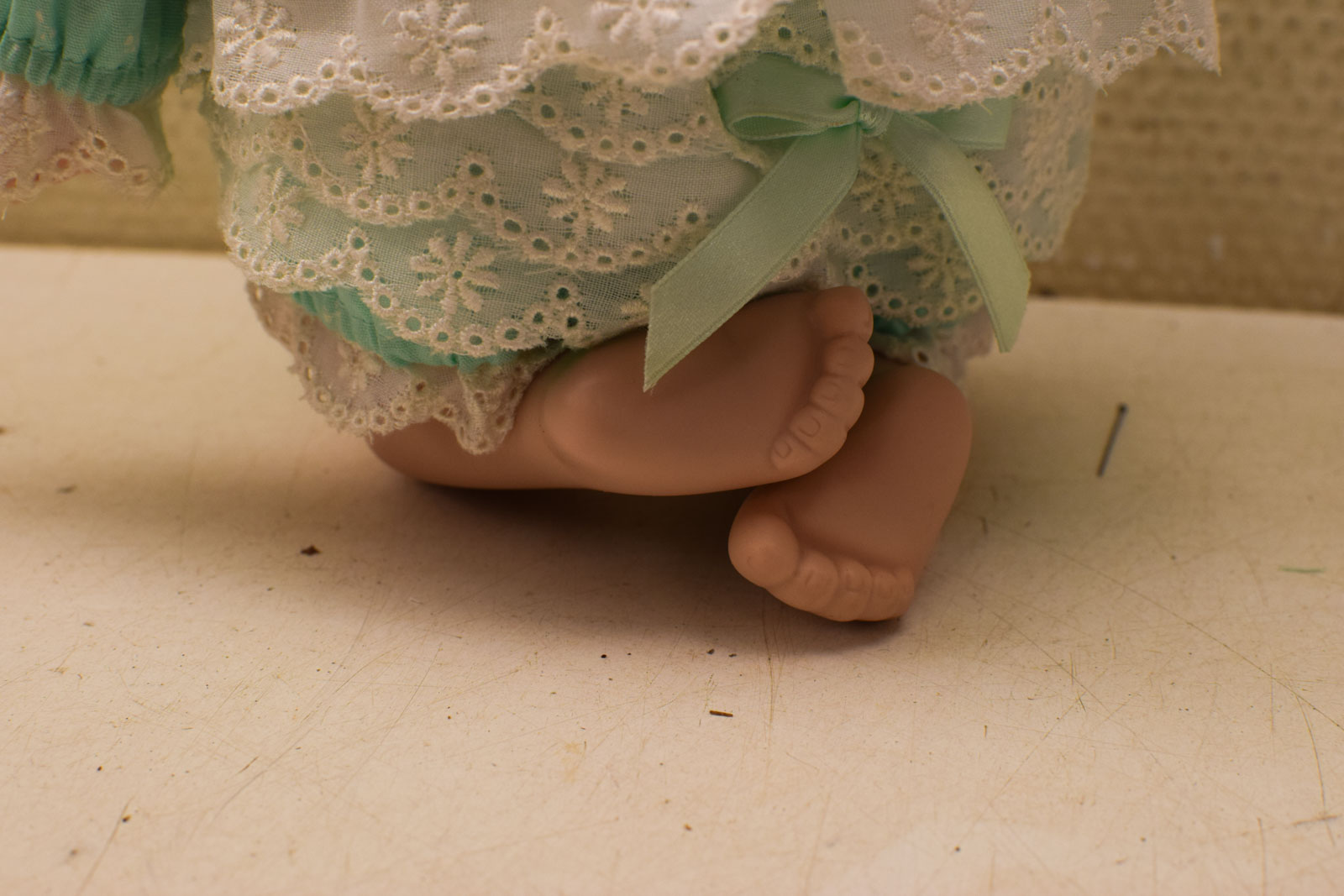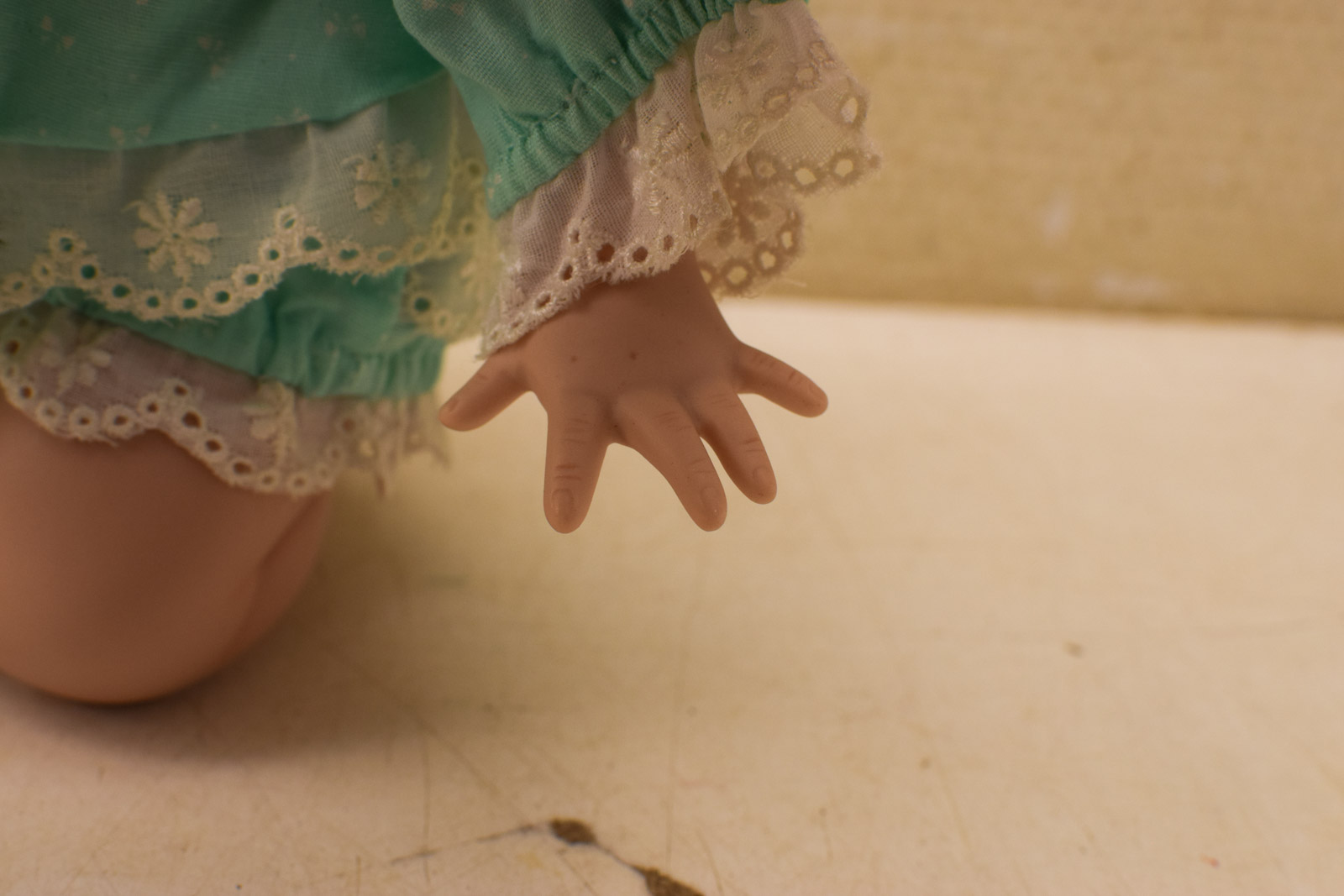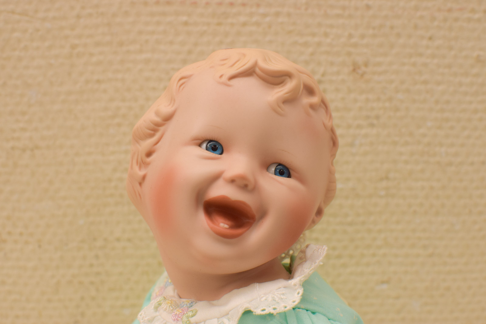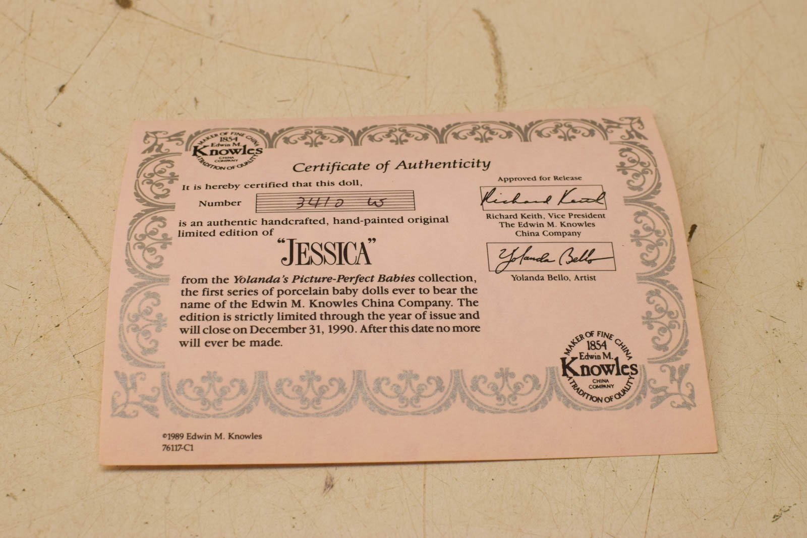 is een certificaat bij De pop is van porselein behalve het lijfje