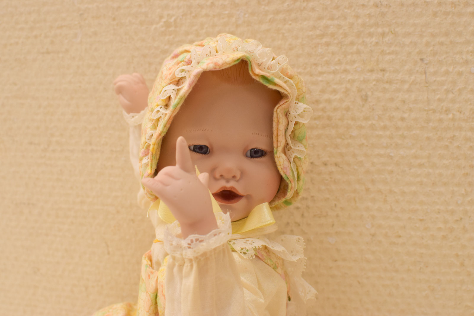 is een certificaat bij De pop is van porselein behalve het lijfje