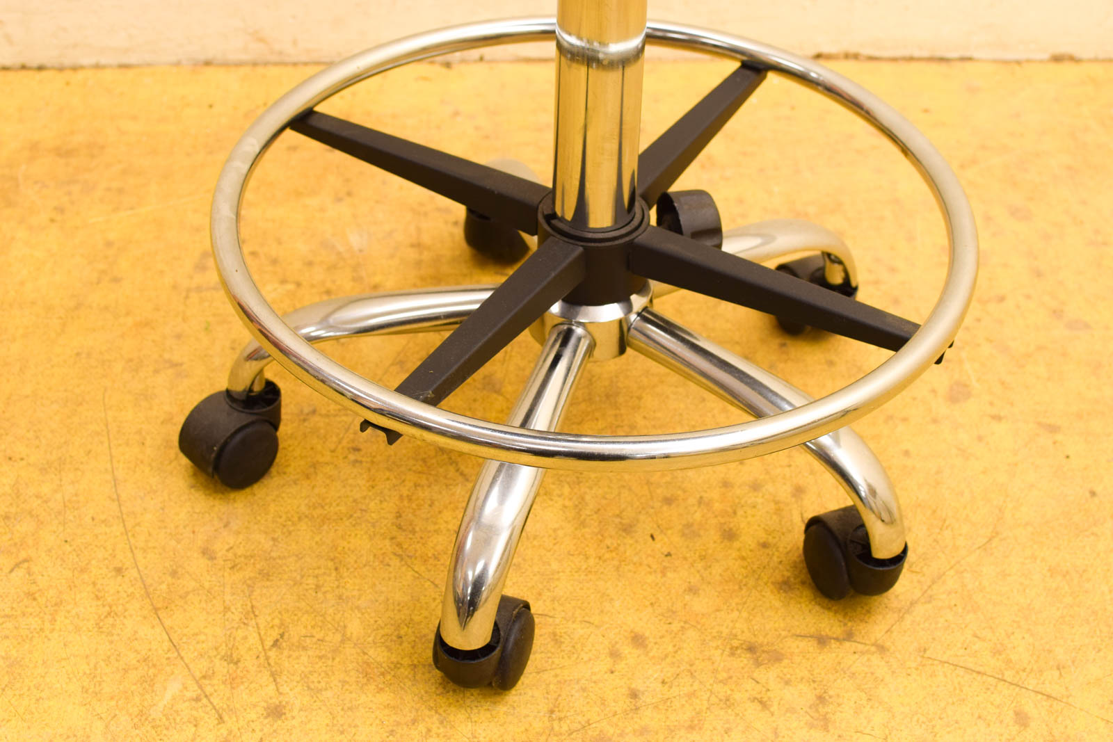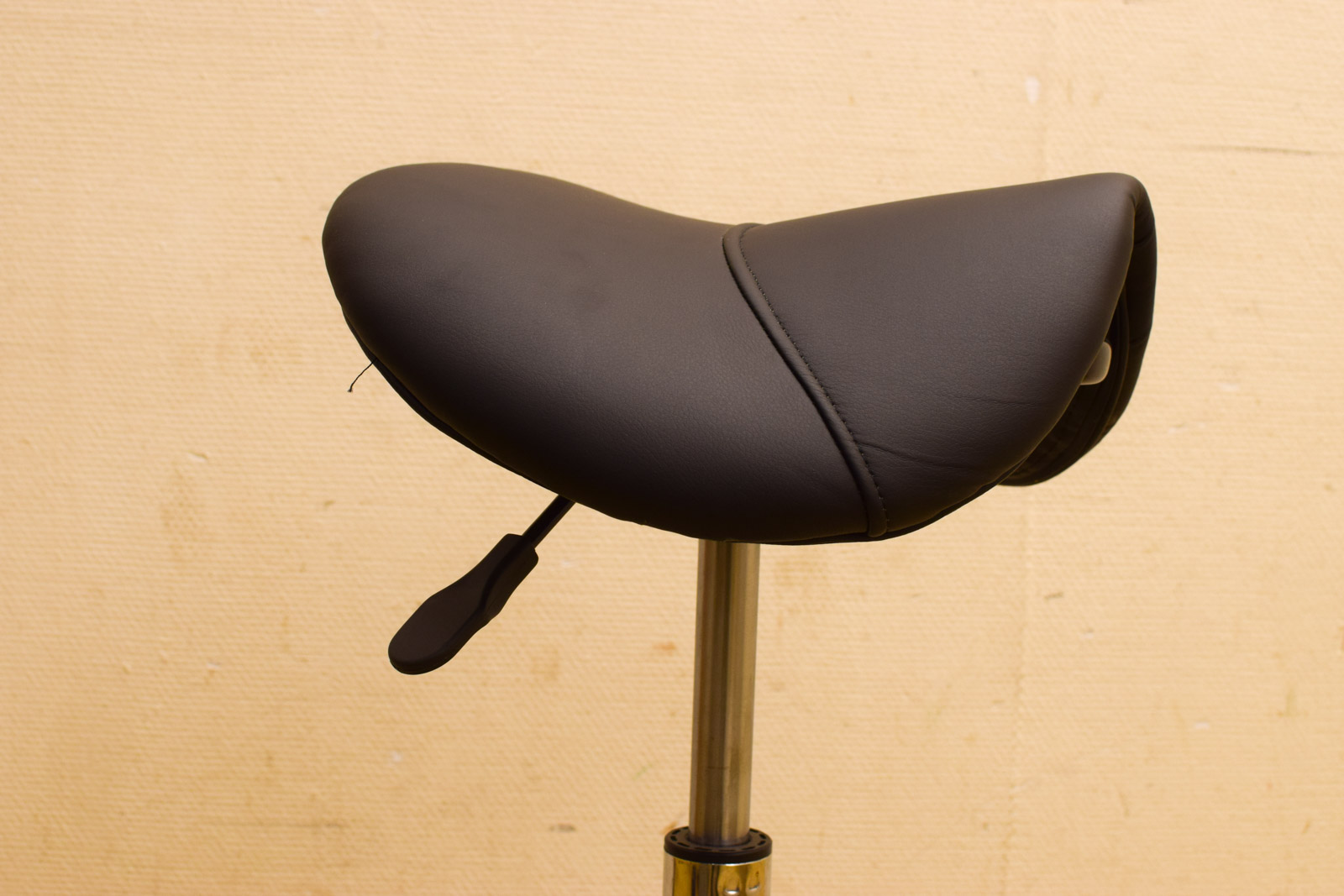 in hoogte te verstellen laagste stand 63 cm hoog hoogste stand hoog 75,5 cm de zitting kan draaien de kruk heeft wieltjes