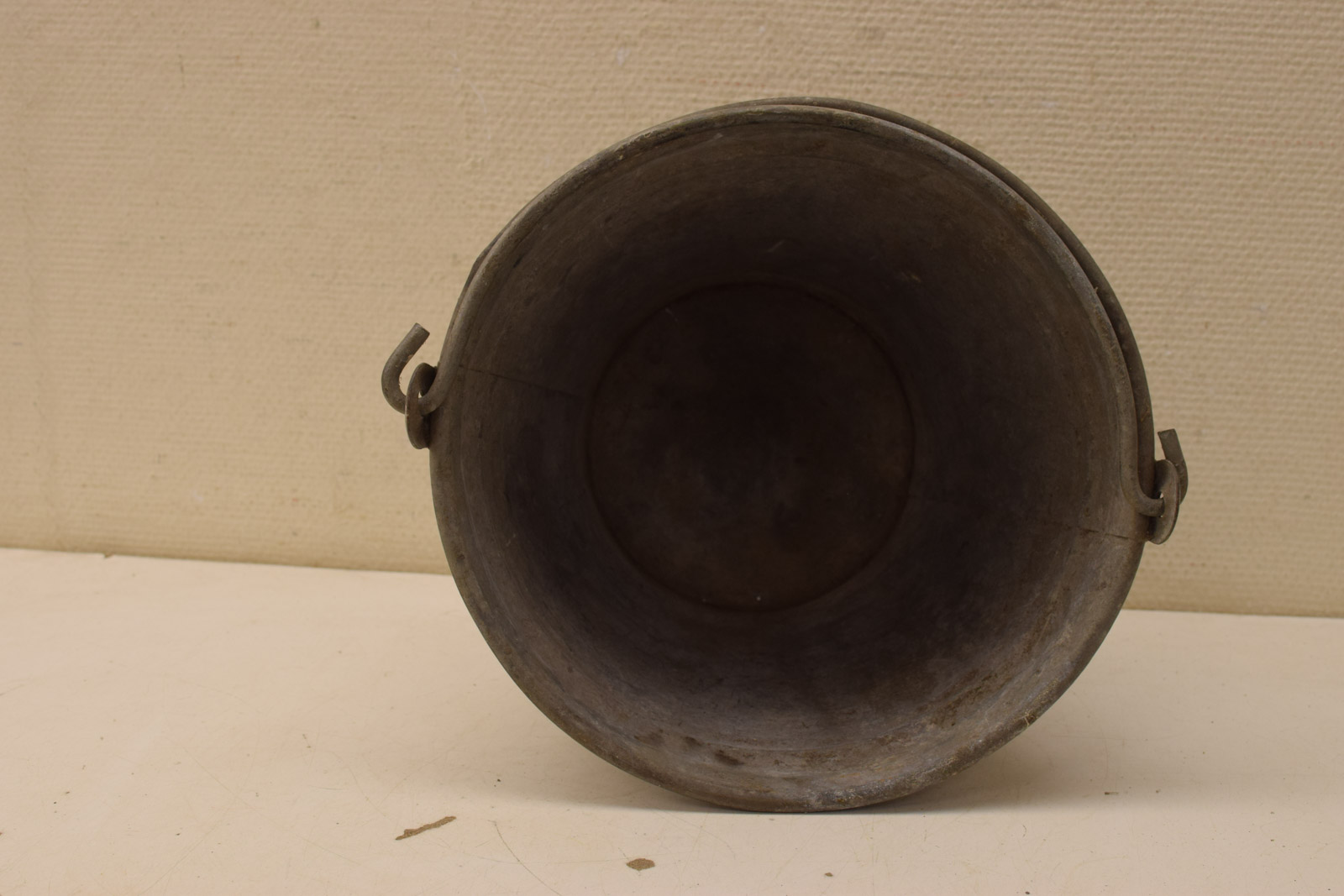 de emmer is gebruikt en heeft gebruikssporen diameter bovenkant opening 34 cm gemeten zonder hendel hoog 29 cm