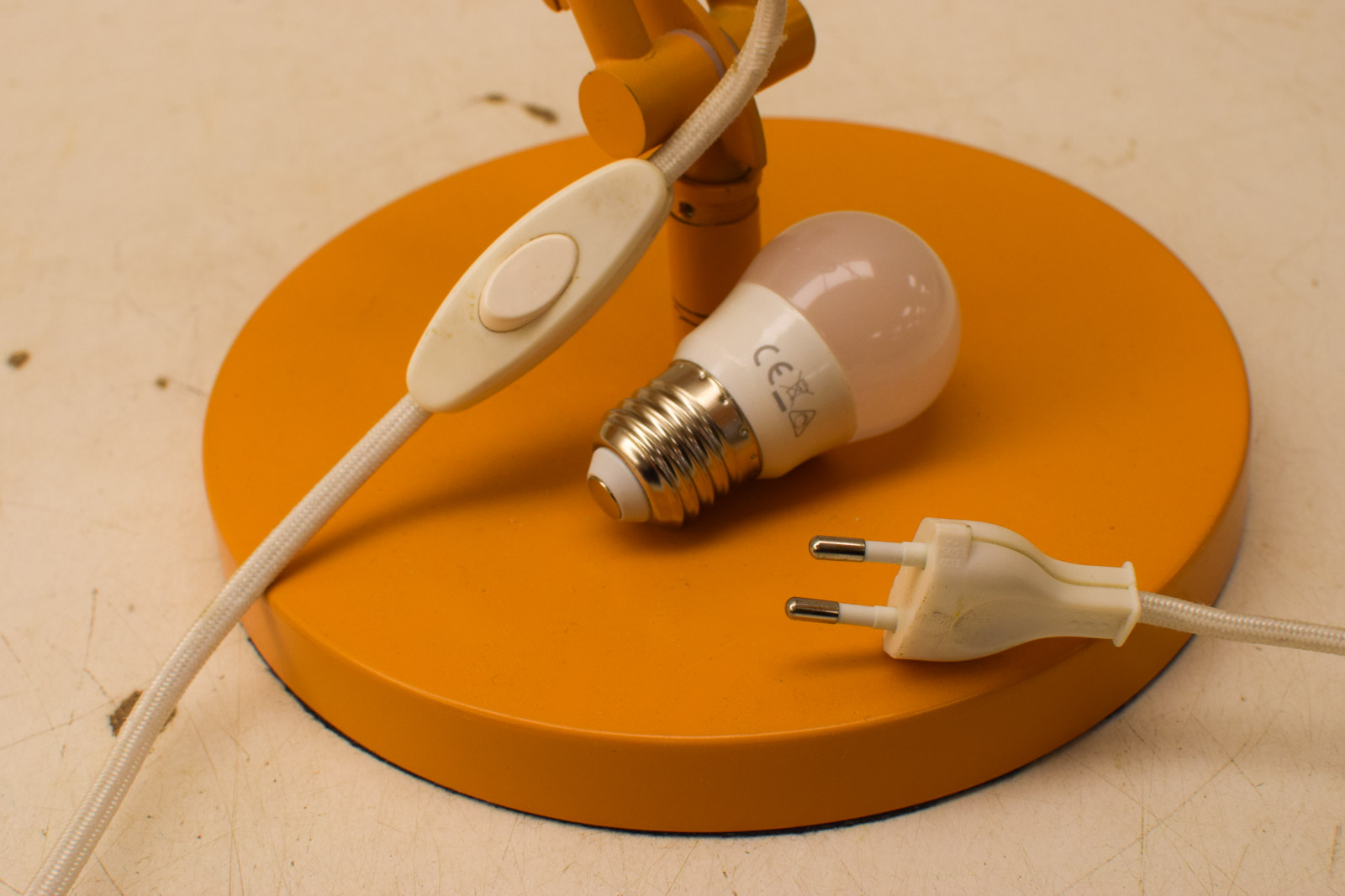 de bedrading heeft een beschadeging de kleur is geel/bruin helemaal uitelkaar gemeten hoog 67 cm inelkaar 42 cm